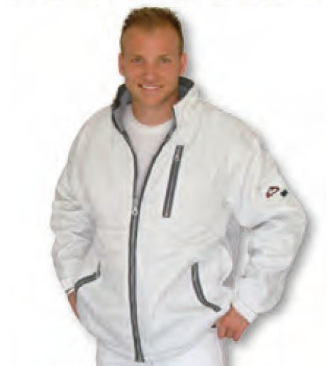 Devant, 2 poches en biais dans soufflet sous opposition fermées par zip.